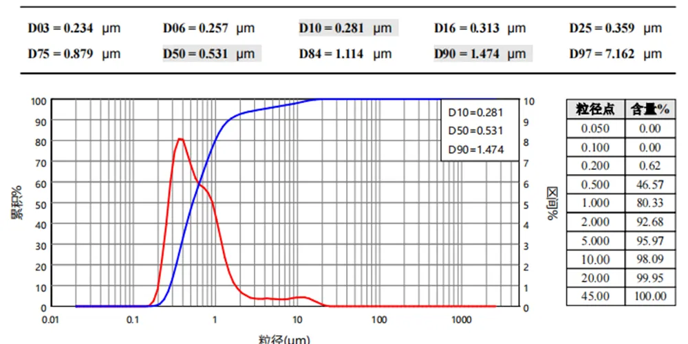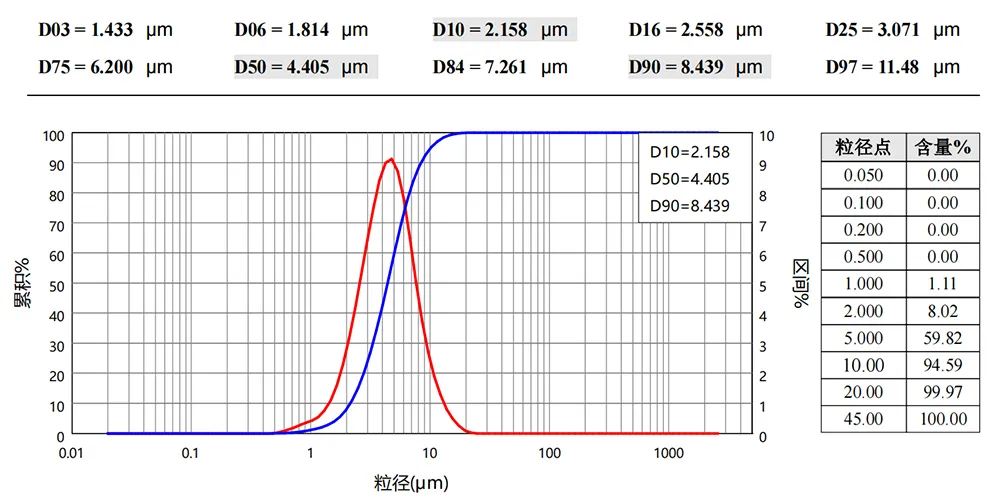 After dispersion, the D90 particle size was reduced from 8.439μm to 1.474μm, meeting the target size.